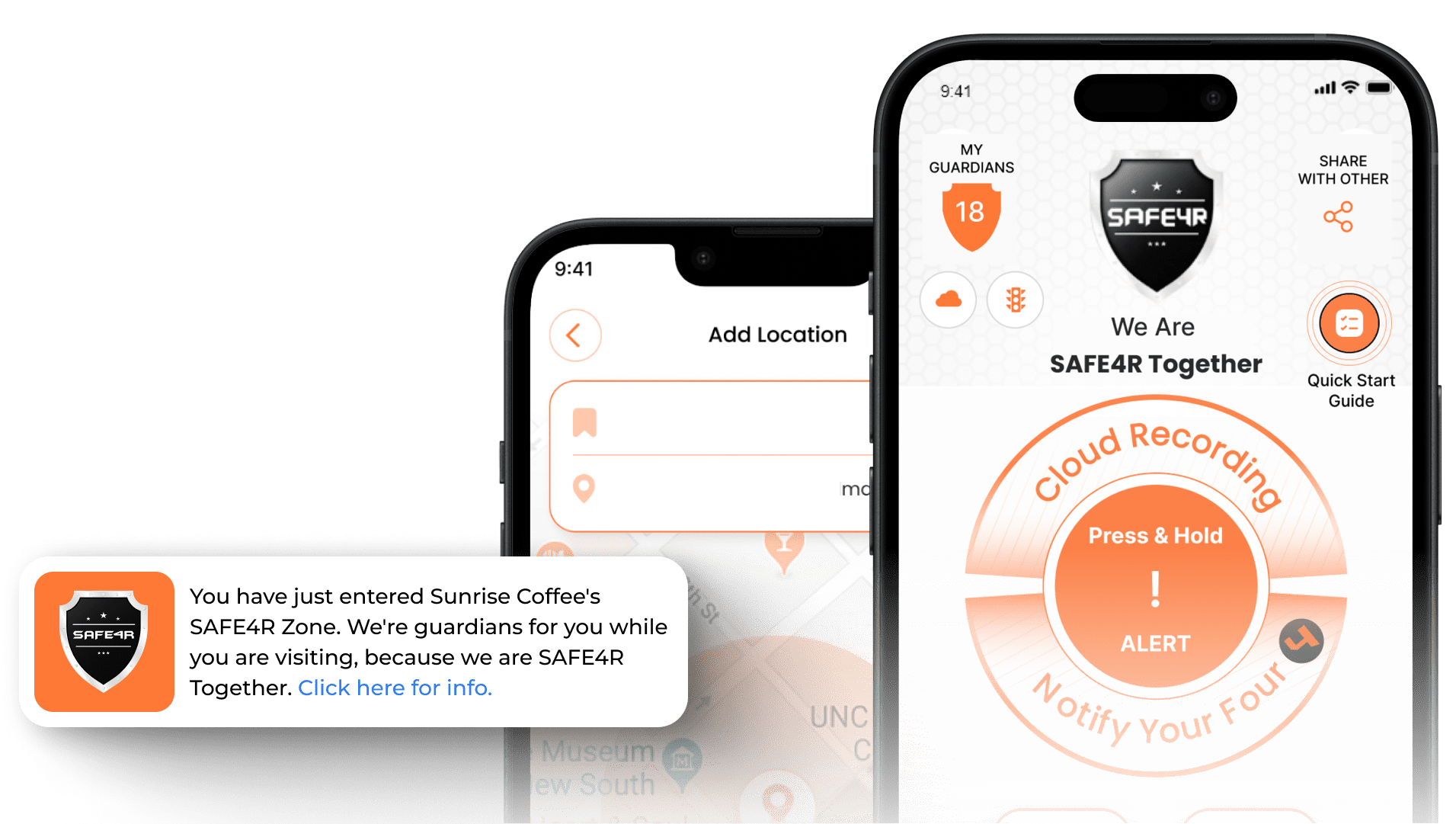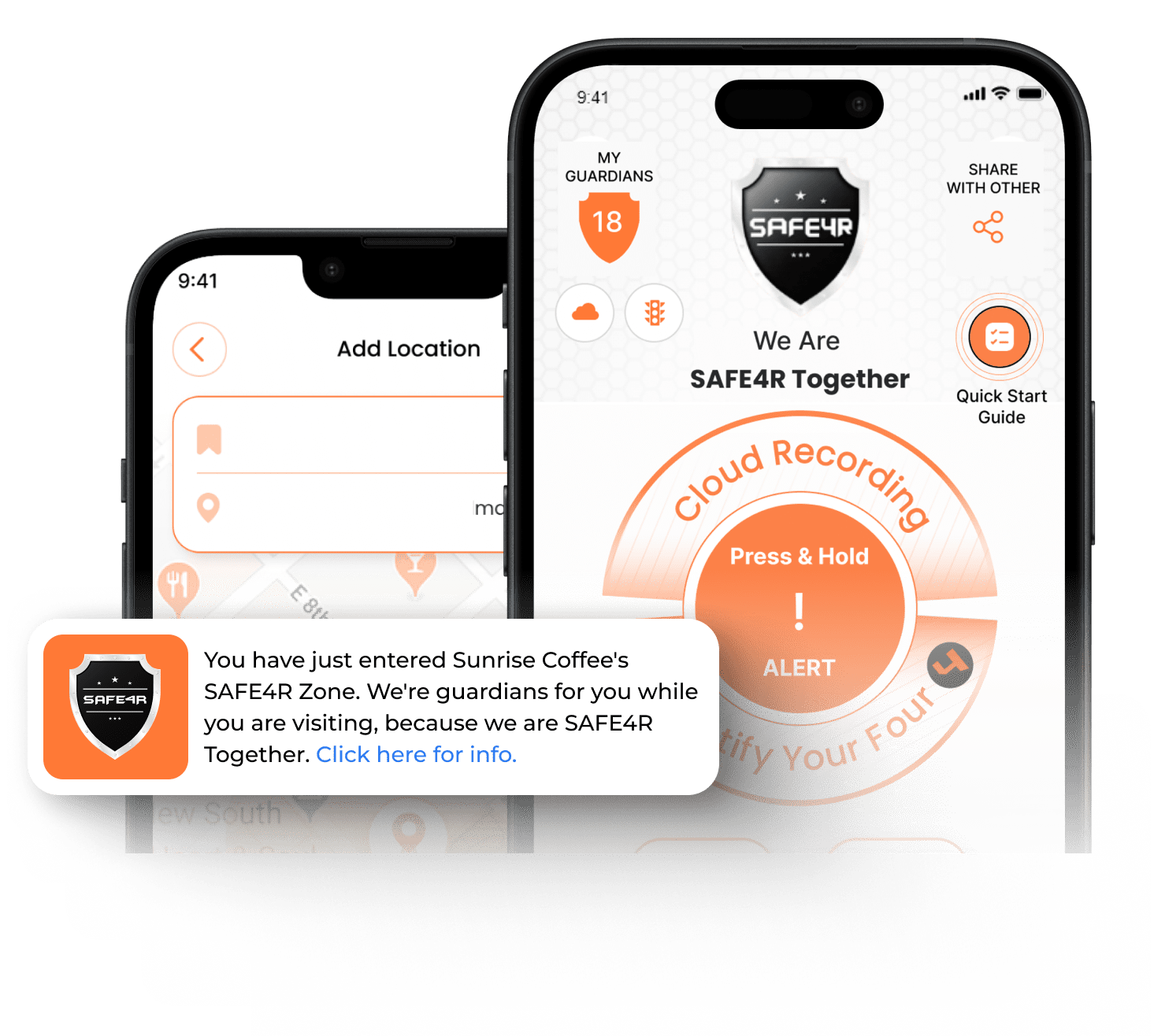 SAFE4R is a community-powered safety platform that is accessed on the SAFE4R app